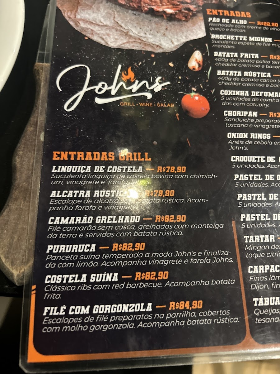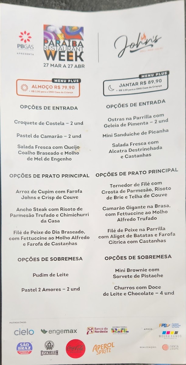 Welcome to JOHN'S Grill Wine Salad, a culinary gem nestled in the vibrant Altiplano Cabo Branco of João Pessoa, Brazil. This restaurant artfully combines an inviting Churrascaria experience with a diverse menu that caters to various palates, including seafood, vegetarian, and light dining options. The high-glass windows create a seamless flow between the interior and breathtaking outside views, enhancing your dining experience. Guests can savor expertly crafted dishes ranging from succulent meats to fresh fish, all served amidst a romantic atmosphere. Patrons like Robert Eden and Luzenir Ramseyer praise the delicious food and professional service, highlighting the delightful ambiance that makes every meal memorable. With options for both lunch and dinner, JOHN'S promises not just a meal but a truly enjoyable experience, perfect for special events or casual gatherings. Don't miss out on their appealing Happy Hour for a chance to indulge without overspending.